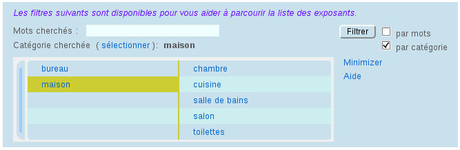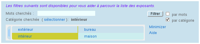Les filtres suivants sont disponibles pour vous aider à parcourir la liste des exposants.